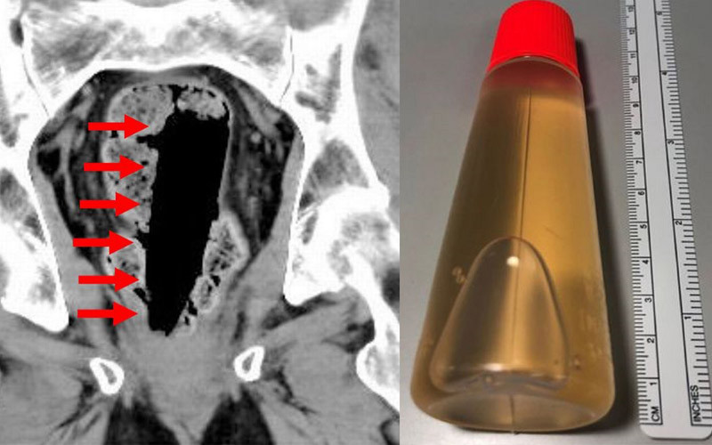 Bác sỹ mô tả: “Dạ dày của bệnh nhân nguyên vẹn nhưng do ruột mỏng hơn nên 2 con lươn đã cố gắng cắn thủng và trườn ra. Chính lỗ thủng ở đại tràng này đã khiến bụng bệnh nhân đầy phân và nước. Các loại dịch trong hệ tiêu hóa đã gây viêm nặng ổ bụng và nếu không được điều trị kịp thời, tính mạng bệnh nhân sẽ bị đe dọa”.