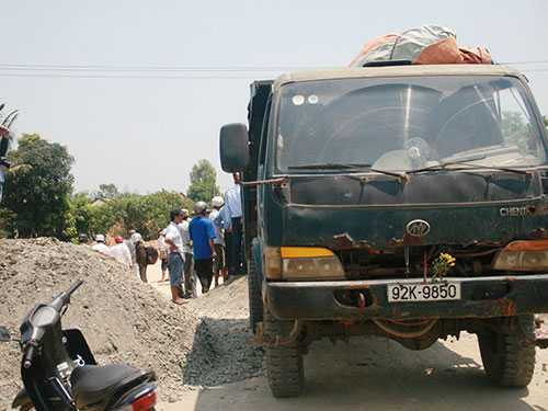 Cùng thời điểm này, ông Thạnh ra bên ngoài để cản trở việc thi công thì bị tài xế xe tải BKS 92K-9850 đổ đất chôn vùi. Sau khi phát hiện sự việc, rất đông người dân đã chạy tới đào đống đất hơn 10 phút mới kéo được ông Thạnh lên. “Ổng đứng sau xe hồi chưa đổ đất, tài xế thấy mà vẫn đổ đất chôn lấp ổng luôn” - bà Thảo thuật lại.