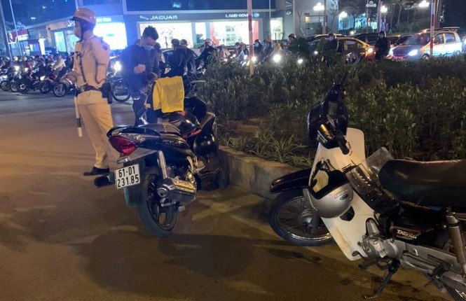 Thông tin ban đầu, khoảng 18h55 ngày 19/2, Tổ công tác gồm đại uý Bùi Duy Ngọc, thượng uý Vũ Đình Thanh và trung uý Nguyễn Đức Anh thuộc Đội CSGT số 7 (Phòng CSGT, Công an TP Hà Nội) làm nhiệm vụ tại chốt giao thông Lê Văn Lương - Khuất Duy Tiến thì phát hiện 2 người đi xe máy xô xát.
