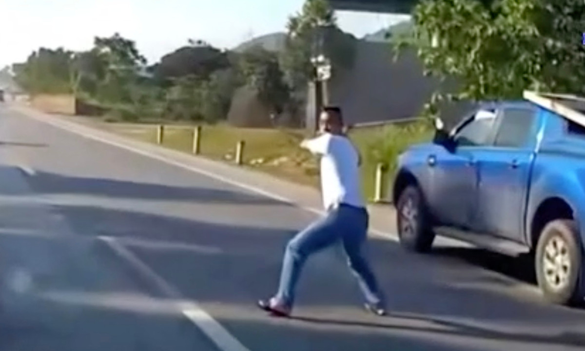 Sau đó, một người đàn ông trên xe bán tải đi xuống cầm gậy golf vung tay dọa vụt vào ô tô con đang đi đến. Vụ việc được cho là xảy ra trên QL1A đoạn qua huyện Nghi Lộc, tỉnh Nghệ An.