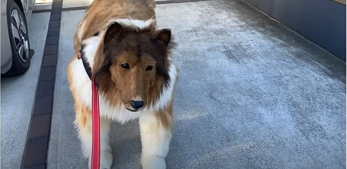 Trong trang phục trị giá khoảng 15.000 USD (khoảng 355 triệu đồng), mô phỏng một chú chó collie, người đàn ông Nhật Bản được biết đến với nickname Toco đã bước ra ngoài đi dạo, thỏa mãn ước mơ "trở thành chó cưng" của mình.