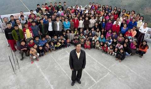Có lẽ hiếm có gia đình nào lại có đông thành viên như gia đình của ông Ziona Chana với 39 người vợ, 94 người con và 33 đứa cháu, tất cả đều cùng sống trong một tòa nhà bốn tầng với 100 phòng ở một vùng hẻo lánh miền đông bắc Ấn Độ.