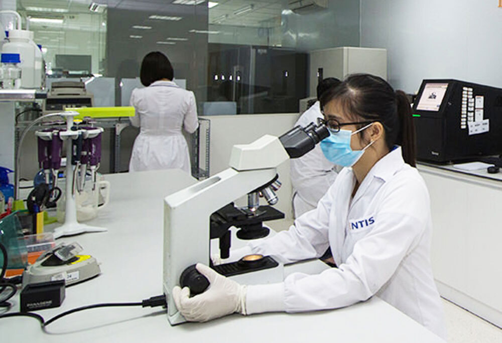 Đại tá Hà Quốc Khanh hướng dẫn cán bộ trẻ quá trình xem các kết quả xét nghiệm. (Ảnh: GENTIS)