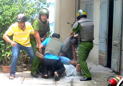 Hàng chục Cảnh sát thành phố Vũng Tàu phong tỏa hiện trường, kêu gọi ông ta đầu hàng nhưng bất thành.