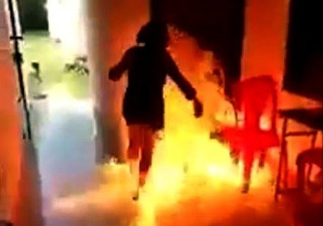 Lúc này, nhiều người có mặt định lao vào can ngăn nhưng Láng lớn tiếng đe dọa sẽ cắt cổ nạn nhân. Đồng thời, hắn lấy từ trong túi quần ra chiếc hộp quẹt bật lên để đốt nạn nhân.