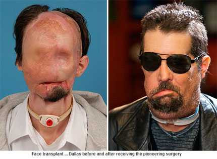 Anh Dallas Wiens, ở Fort Worth, bang Texas, Mỹ đã bị biến dạng mặt hoàn toàn sau một tai nạn điện giật năm 2008. Khi đó, anh chạm vào đường điện cao thế ở nhà thờ và mắt, mũi, môi bị phá hủy hoàn toàn.