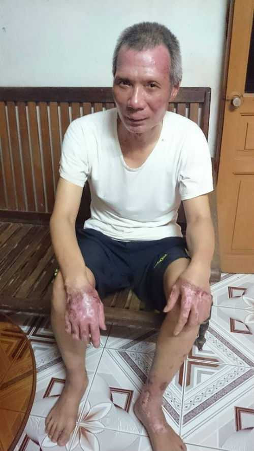 | Nhiều vết thương trên cơ thể ông Thảo sau vụ cháy bình gas. |