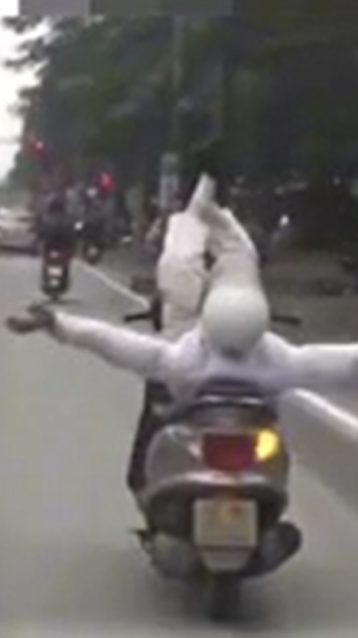 Người đàn ông liều lĩnh 'làm xiếc' với xe máy trên đường phố Nghệ An