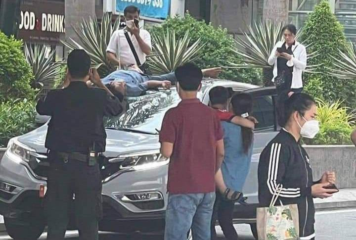 Khi lực lượng an ninh đến khu vực trụ số 3, nhà ga T1 thì phát hiện người đàn ông đang nằm ngửa trên nóc xe ô tô trong tình trạng bất động, nóc xe bị móp, kính chắn gió trước bị vỡ.