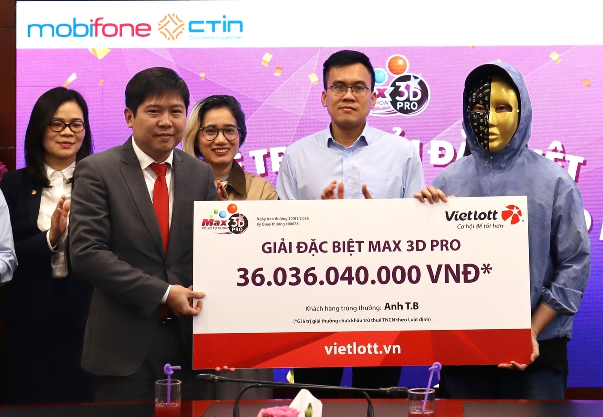 Chiều 31/1, đại diện Công ty Xổ số Điện toán Việt Nam (Vietlott) – Bộ Tài chính cho biết, đơn vị này đã trao giải đặc biệt xổ số tự chọn Max 3D Pro kỳ quay 678 cho anh T.B – chủ thuê bao MobiFone đến từ TP.HCM.