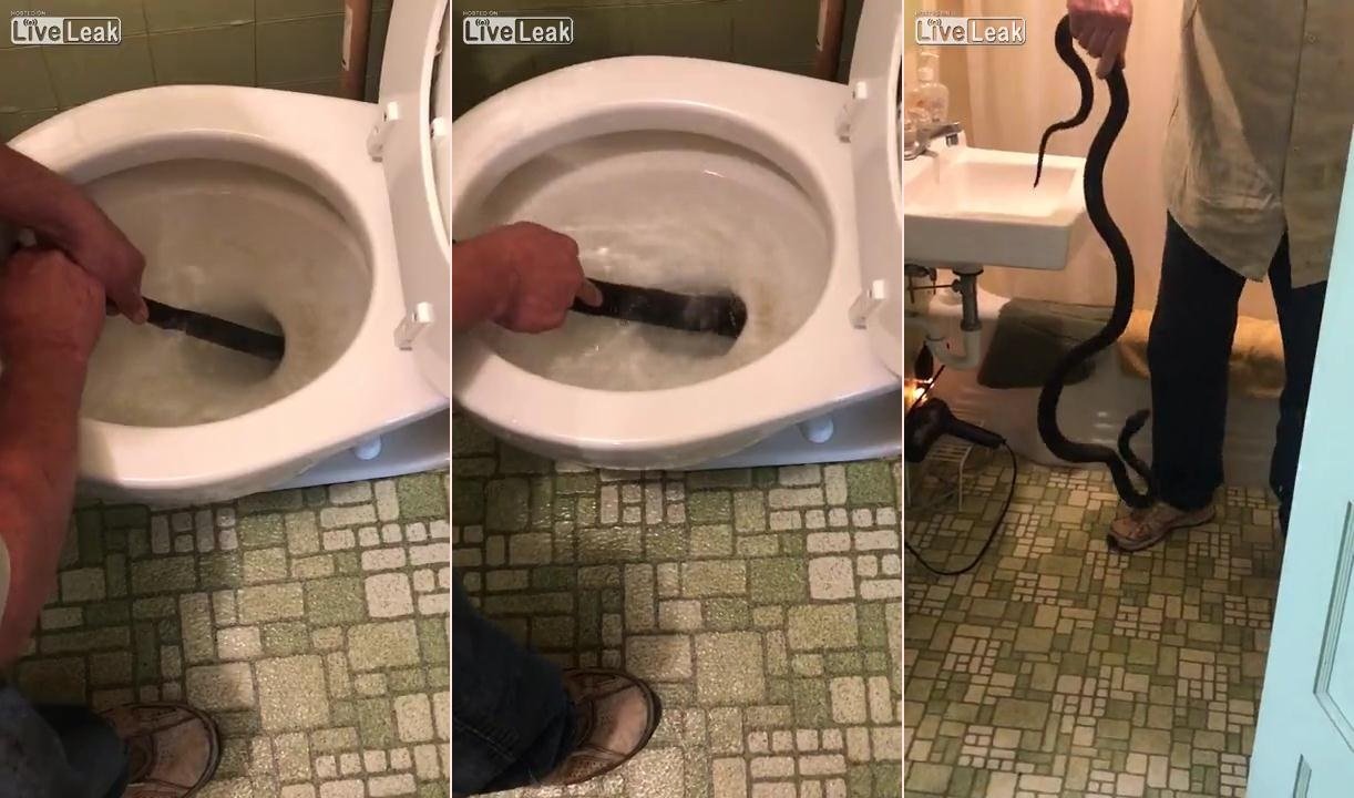 29/09/2017 11:34:00 +07:00Người đàn ông ở thị trấn Lattimore, North Carolina, Mỹ thò tay không vào bồn cầu nhà hàng xóm, tóm gọn con rắn chuột dài 2,7m.