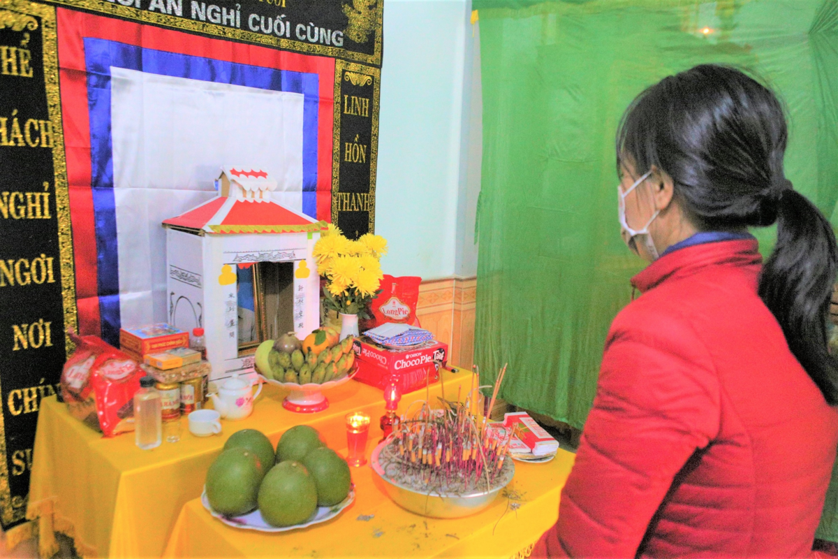 Chị Nguyễn Thị Phương Thảo bên bàn thờ vọng chồng