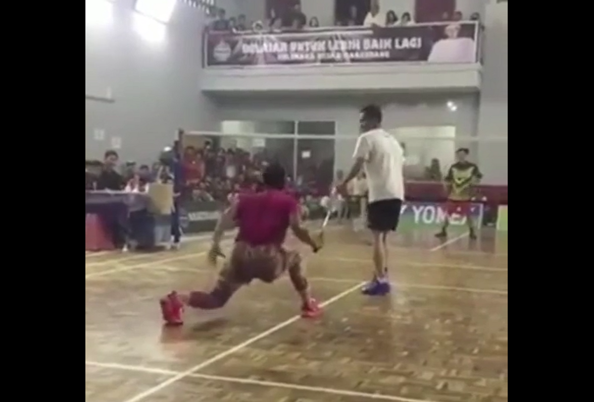 Người đàn ông vừa đánh cầu lông vừa tấu hài