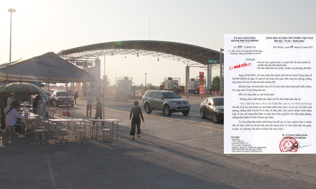 Liên quan đến việc kiểm soát người dân ra, vào TP Hải Phòng để thực hiện công tác phòng chống dịch bệnh COVID-19, sáng 7/2, Văn phòng UBND TP Hải Phòng vừa phát đi công văn hỏa tốc tốc tới các sở, ngành, đơn vị và chính quyền cấp huyện, xã điều chỉnh, bổ sung một số nội dung về công tác phòng chống dịch bệnh COVID-19.
