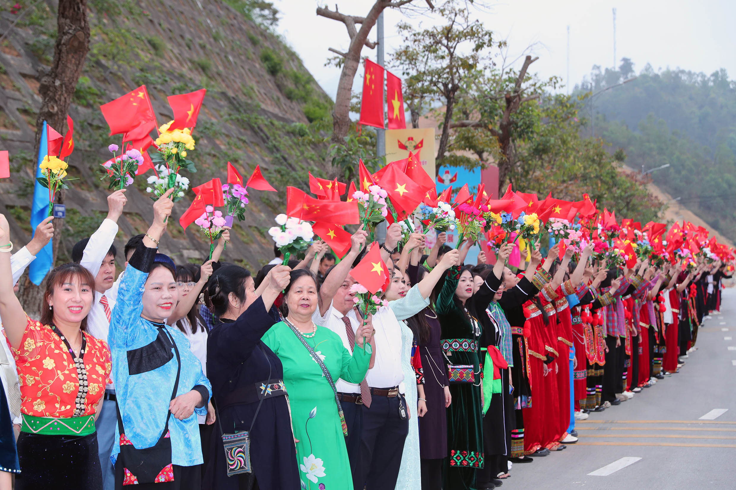 Người dân vẫy cờ hoa rực rỡ chào đón hai Bộ trưởng tại khu vực Cửa khẩu Quốc tế Hữu Nghị.