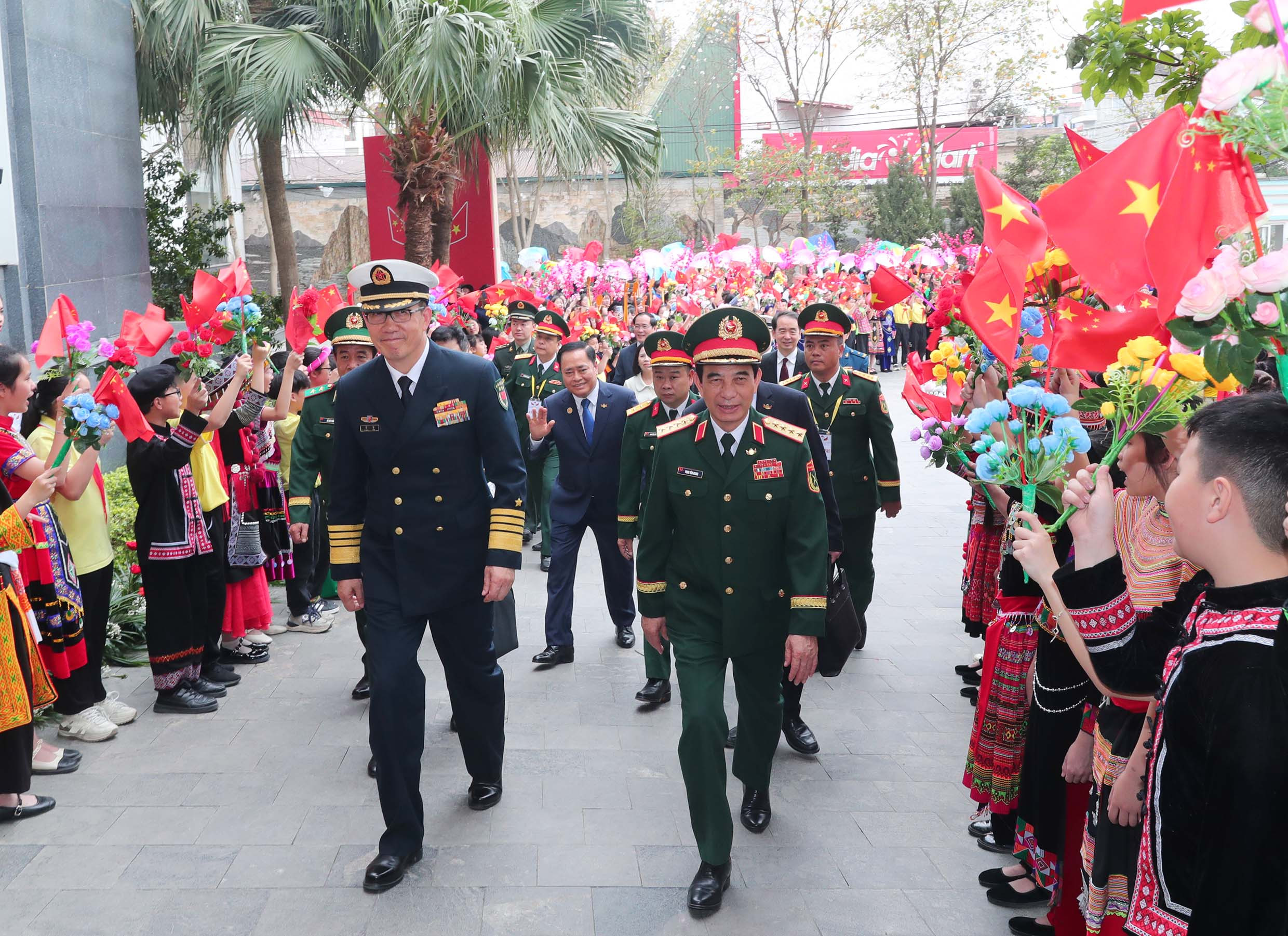 Bộ trưởng Quốc phòng Việt Nam và Trung Quốc tặng quà, giao lưu cùng các em học sinh.