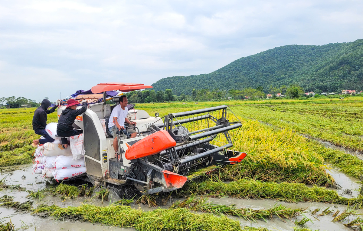 “Nhận thấy bão sắp đổ bộ nên tôi gọi máy gặt từ sớm. Nếu không kịp thu hoạch, lúa sẽ bị ngập úng mất trắng nên bà con đành chấp nhận gặt khi lúa còn chín non”, bà Lê Thị Lành (xã Thành Lộc) chia sẻ.