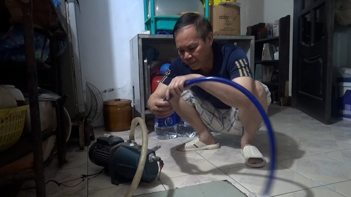 Khoảng 1 tháng nay, người dân ở tổ 19 Phường Trung Văn, quận Nam Từ Liêm, Hà Nội thiếu nước sạch, phải thức đêm đợi nước về.