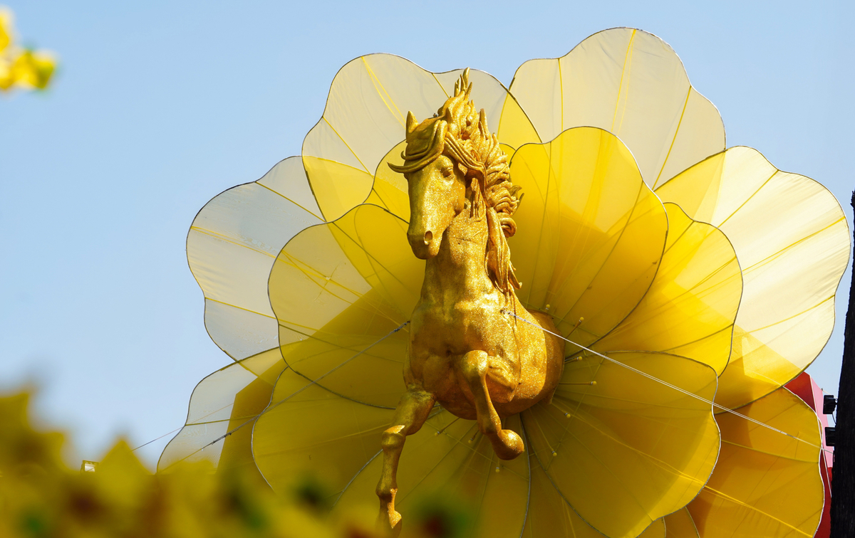Theo Ban tổ chức, hình tượng linh vật năm nay hướng đến việc tạo nên không khí mùa xuân rực rỡ, mang lại cảm giác vui tươi, hạnh phúc cho người dân và du khách khi tham quan lễ hội. Việc xây dựng mô hình ngựa bay từ hoa mai được thực hiện công phu, với quy mô lớn nhất từ trước đến nay. Cổng lễ hội năm nay có chiều cao và diện tích vượt trội so với các năm trước, đơn vị thi công mất khoảng hai tuần để hoàn thiện.
