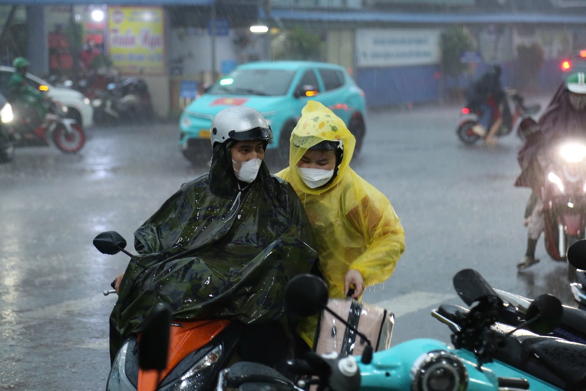 Khoảng 17h ngày 29/8, cơn mưa lớn bất ngờ trút xuống nhưng vẫn không ngăn được dòng người đổ ra bến xe về quê nghỉ lễ 2/9.