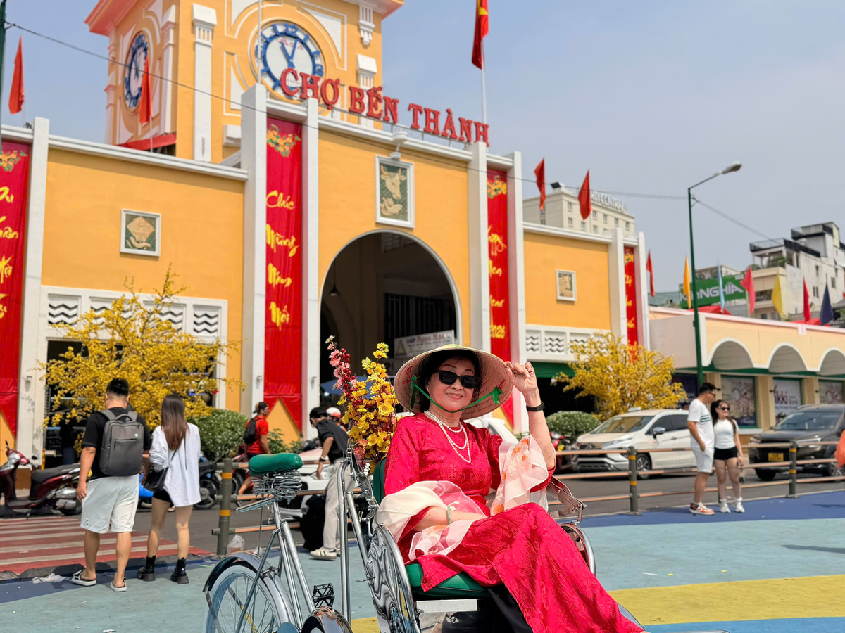 Tại khu vực Chợ Bến Thành và Bưu điện Trung tâm Sài Gòn, người dân xúng xính trong tà áo dài đổ về chụp ảnh kỷ niệm.