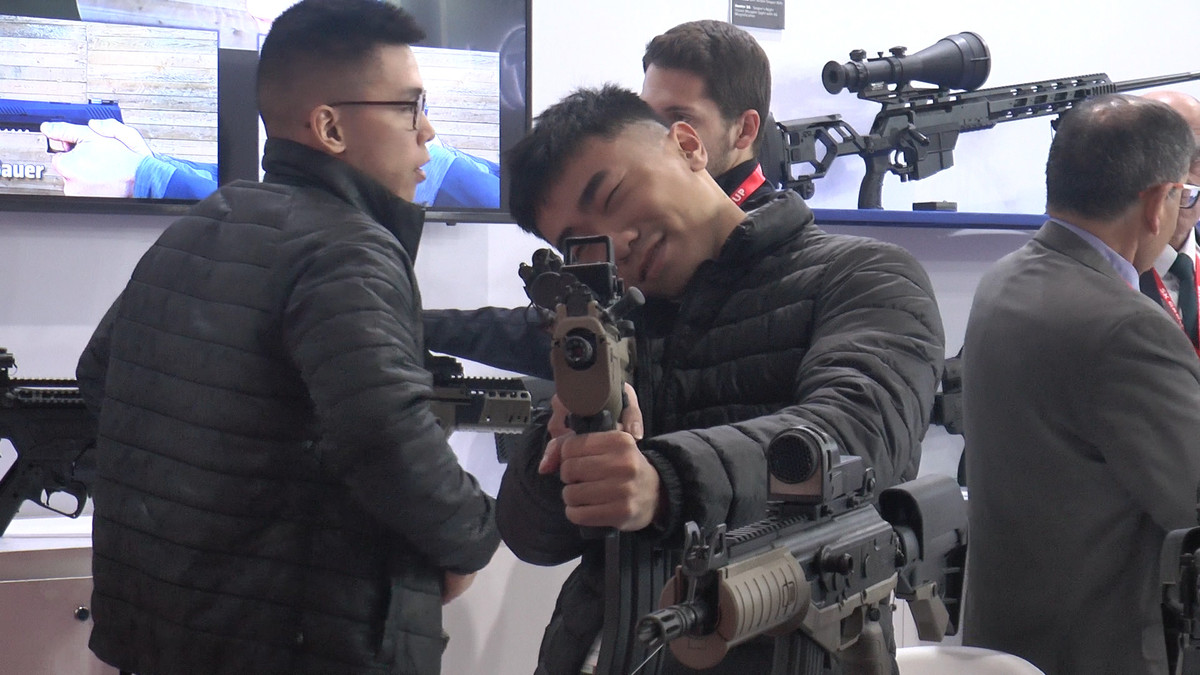Người dân trải nghiệm bắn súng ở Triển lãm Quốc phòng 2022