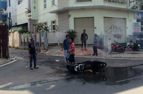 Nhiều người đi đường thấy cháy hô hoán cho cô gái trẻ biết. Khi đến trước số nhà 328 Phạm Văn Đồng (phường 1, quận Gò Vấp), chị Y mới quay đầu lại để nhìn thì thấy đuôi xe bốc cháy dữ dội.