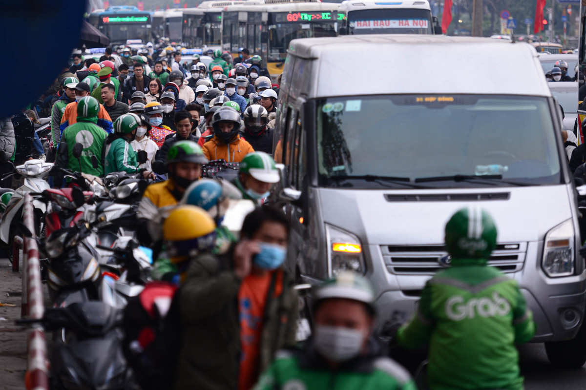 Trước bến xe Nước Ngầm, xe ôm tập trung đông khiến giao thông khu vực này càng trở nên hỗn loạn.
