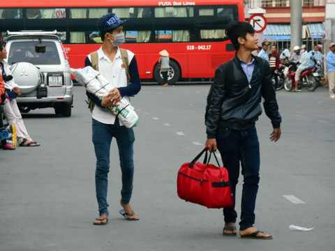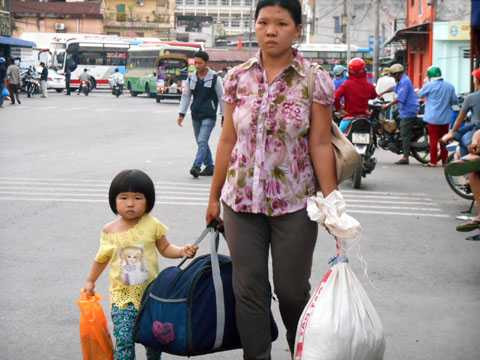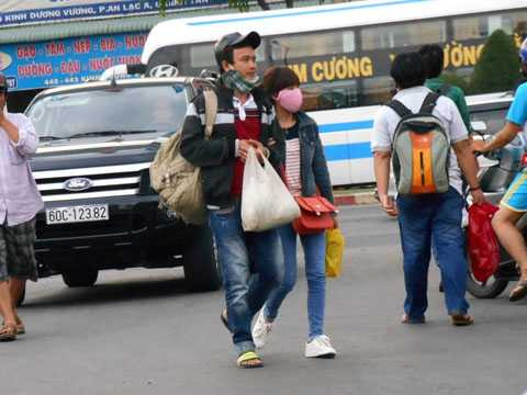 Chiều 3/5, hàng ngàn người dân di chuyển bằng nhiều phương tiện như xe máy, xe khách, xe buýt, ô tô...từ hướng miền Tây vào TP.HCM.
