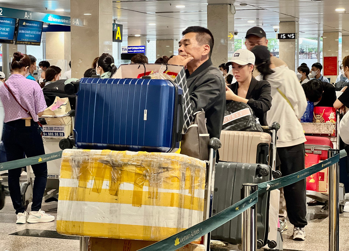 Vào TP.HCM kinh doanh, 3 chị em chị Kiều háo hức cùng nhau về quê Vĩnh Phúc thăm gia đình dịp Tết. Dù 15h05 máy bay từ TP.HCM đi Hà Nội mới khởi hành, nhưng khoảng 12h, chị Kiều và người thân đã có mặt tại sân bay, xếp hàng chờ làm thủ tục.