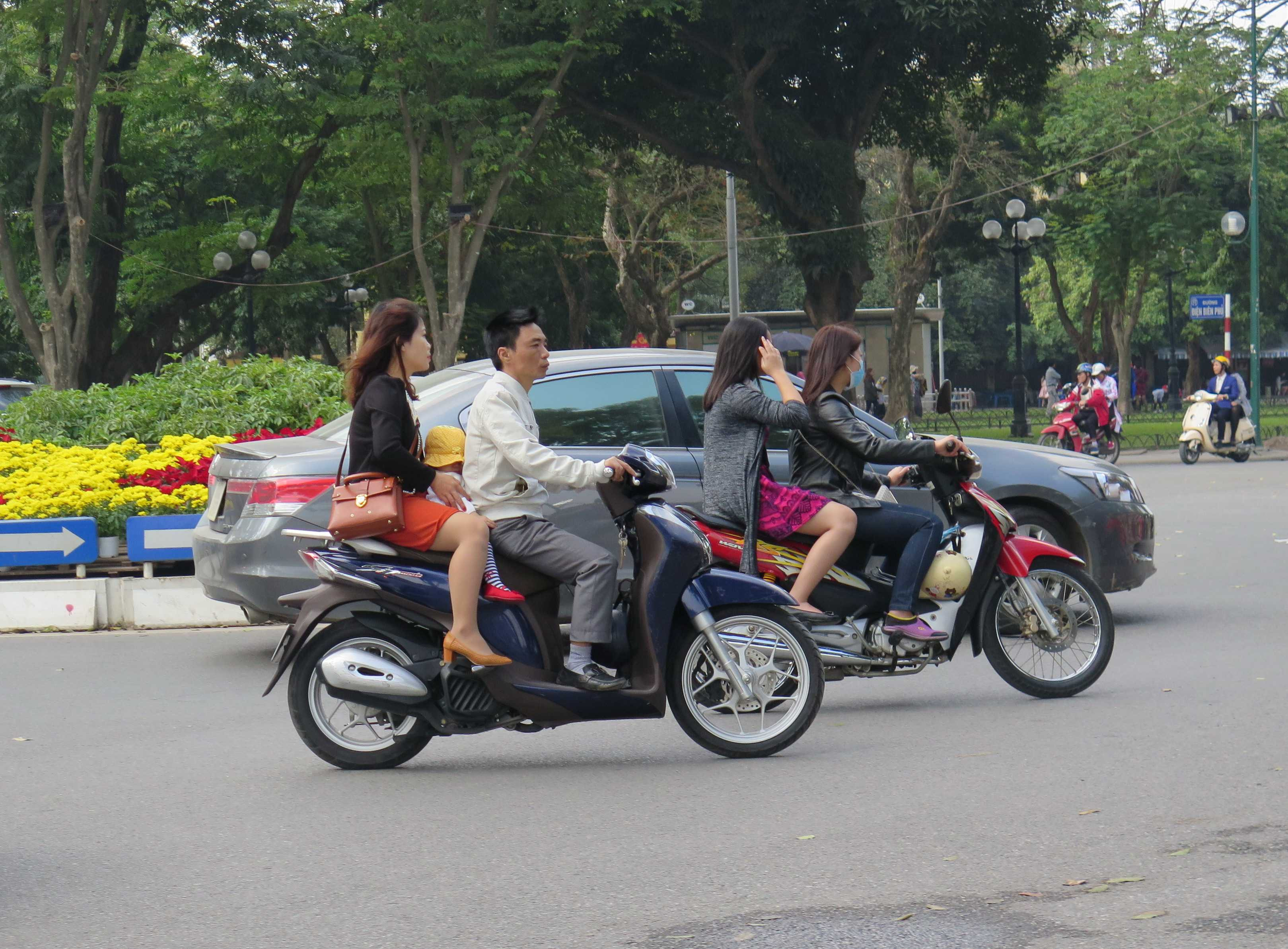 Tất cả đều vô tư xuống phố mà không đội mũ bảo hiểm