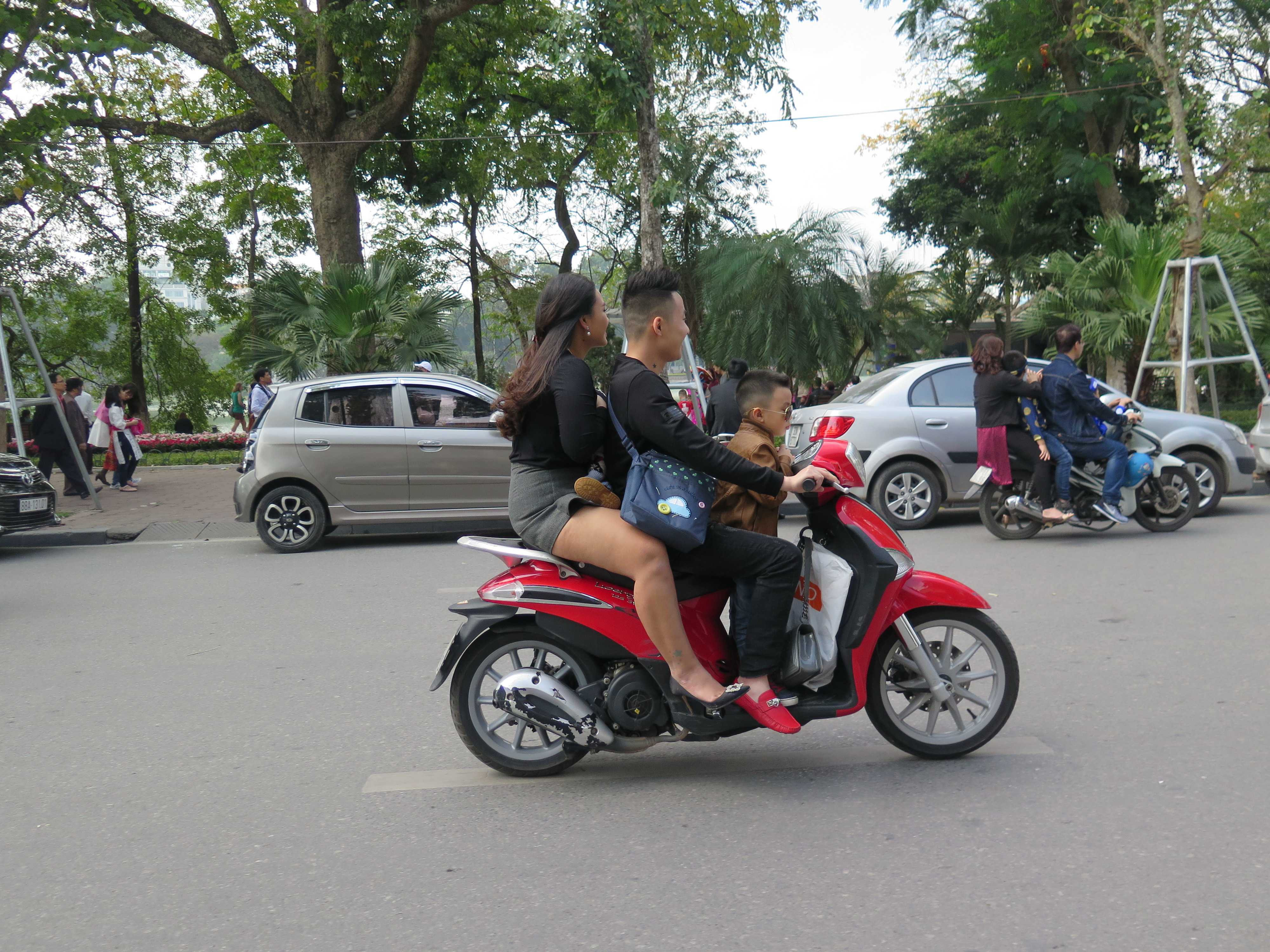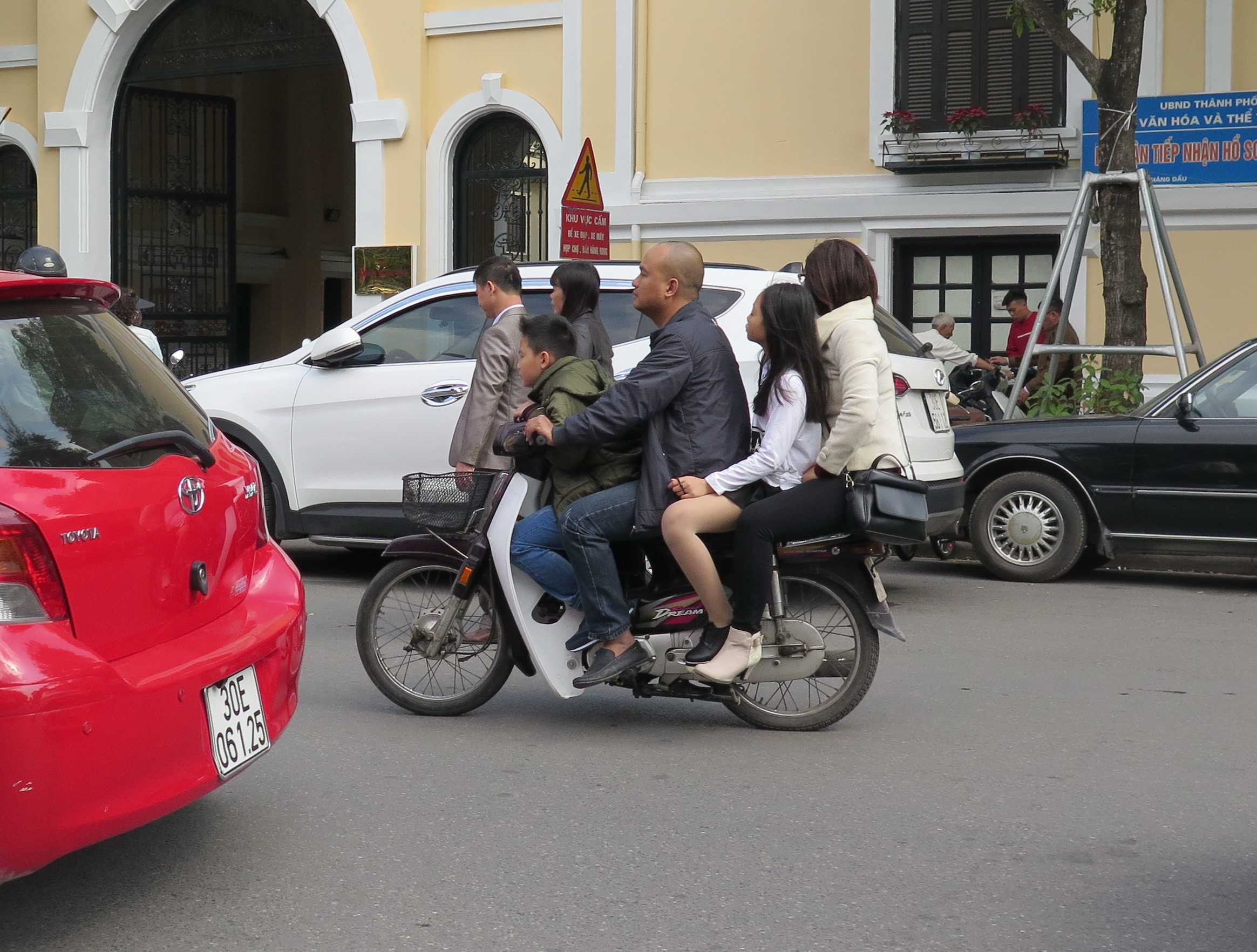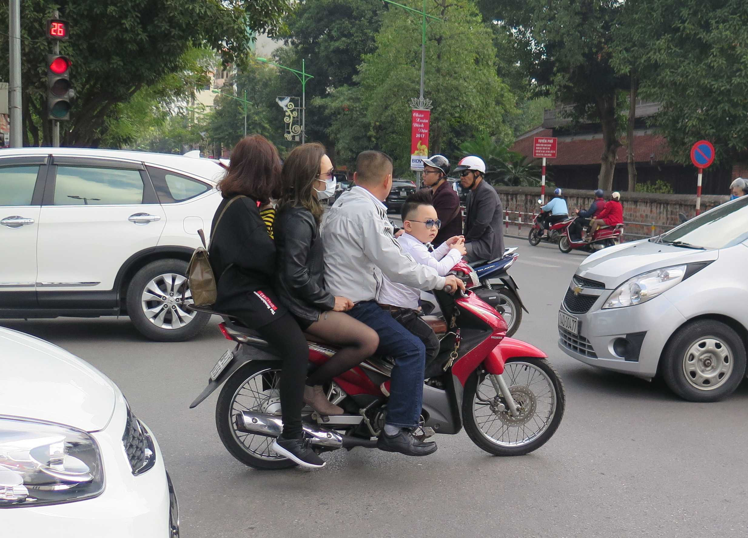 Cả gia đình không đội mũ bảo hiểm dạo phố trong ngày đầu năm mới