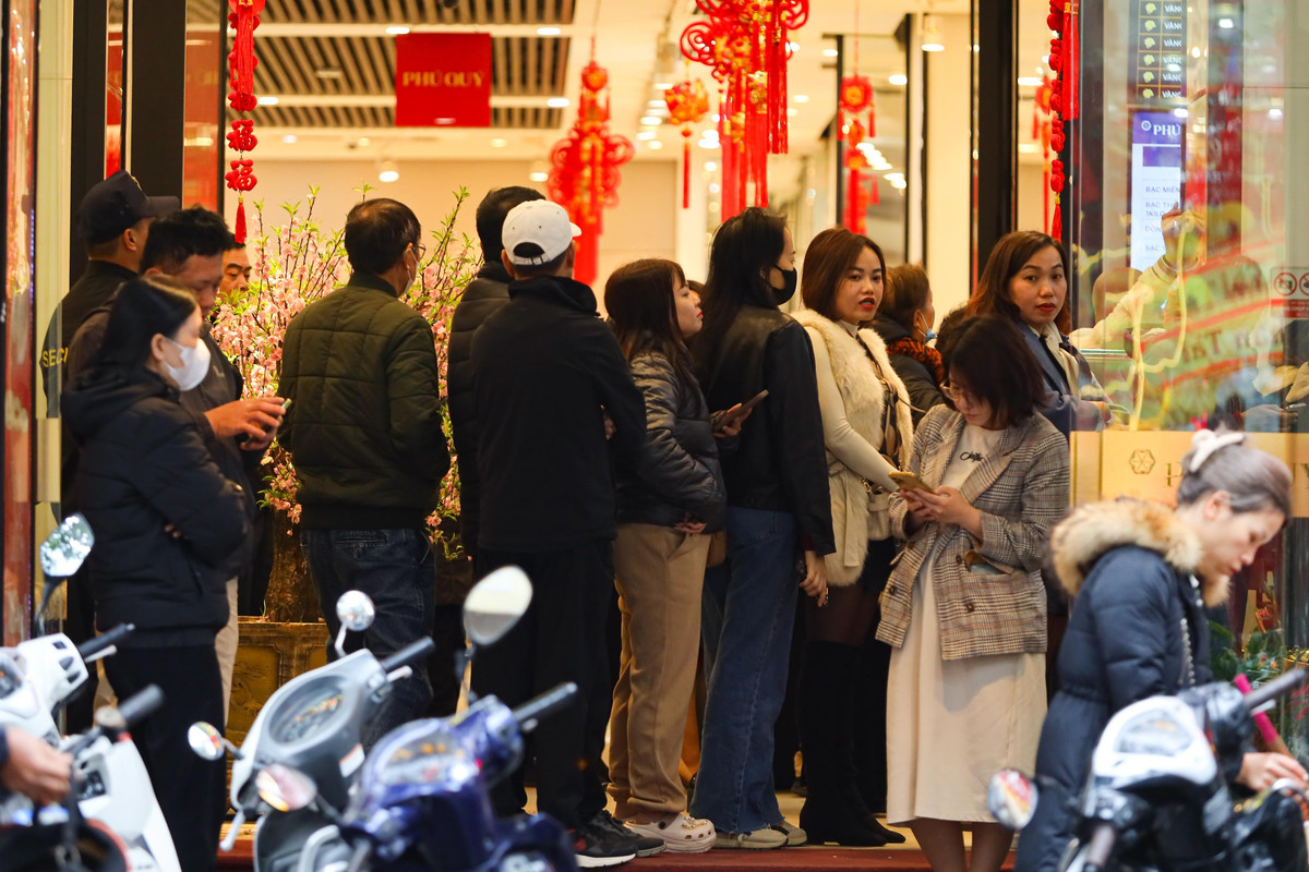Tại cửa hàng vàng Phú Quý, khách phải xếp hàng chờ đến lượt vào mua.