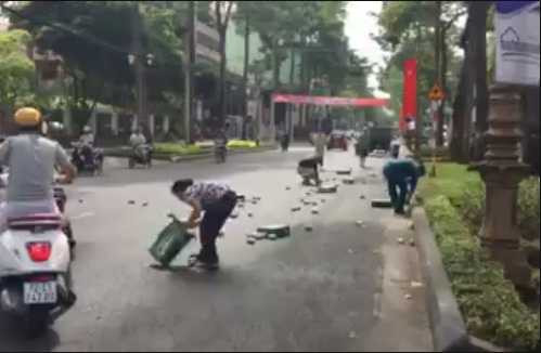 Video: Người dân gom từng lon bia trả lại tài xế xe tải ở Vũng Tàu (Nguồn facebook)