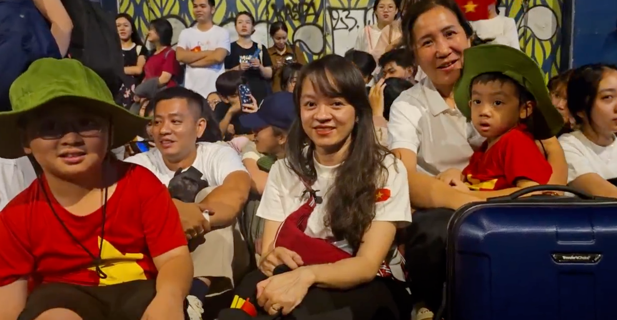 Gia đình chị Nguyễn Thị Thanh Thảo đi từ Tây Ninh lúc 8h tối 26/4, đến TP.HCM khoảng 2h sáng. Chị Thảo muốn bản thân cùng hai con của mình được tận mắt chứng kiến lễ tổng duyệt diễu binh, diễu hành và thể hiện tình yêu nước cùng lòng tự hào dân tộc.(Ảnh: Sỹ Đoan)