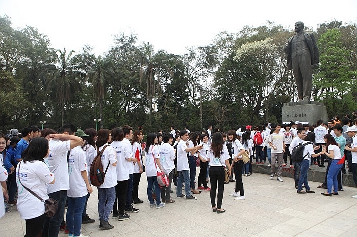 Cuối hành trình, các bạn đã tập trung ở vườn hoa Lê nin và thực hiện một màn nhảy flashmob không có sắp đặt trước để hưởng ứng Giờ Trái Đất 2013.
