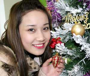 | Miss Tài năng Mai Phương ấp áp sắc đỏ bên cây thông Noel. |