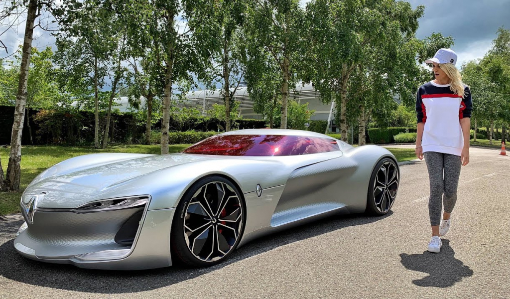 Người đẹp tóc vàng và mẫu xe điện toàn tính năng lạ lùng Renault Trezor. (Ảnh: Facebook).