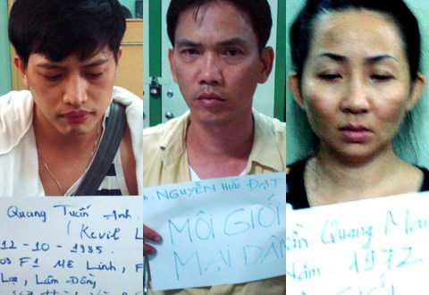 Sáu bị can bị đề nghị truy tố gồm: Trần Quang Mai (nữ, còn gọi là Gái em, 42 tuổi, quê Long An, ngụ Q.3), Lê Quang Tuấn Anh (còn gọi là Kevin, 25 tuổi, quê Lâm Đồng, ngụ Q.Phú Nhuận), Võ Thị Mỹ Xuân (30 tuổi, quê Cần Thơ, ngụ Q.Gò Vấp - hoa hậu Nam Mê Kông năm 2009), Trần Thị Hoa (còn gọi là Thiên Kim, 27 tuổi, quê Hải Dương - người mẫu, từng đoạt giải á khôi cuộc thi Miss Shining Beauty 2012), Nguyễn Hữu Đạt (44 tuổi, quê Cần Thơ, cùng ngụ Q.Bình Thạnh) và Lương Quốc Huy (28 tuổi, quê Bình Thuận, ngụ Q.1).