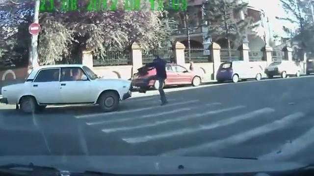 (VTC News) - Khi người đi bộ tức giận, anh ta liền thượng cẳng chân với ô tô.
