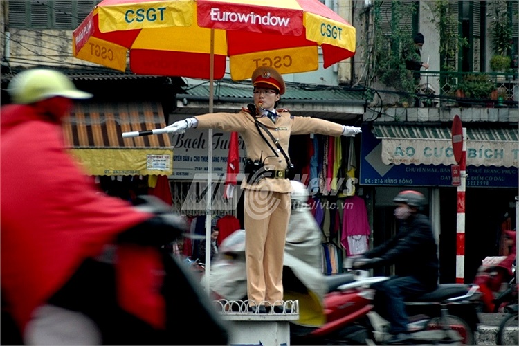 Trên bục chỉ huy, nữ CSGT nghiêm nghị...