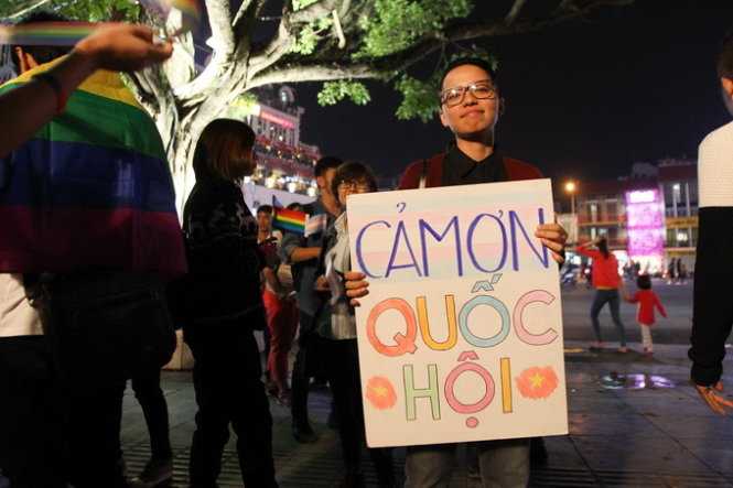 Theo đó, Bộ luật Dân sự (sửa đổi) quy định: “Việc chuyển đổi giới tính được thực hiện theo quy định của luật. Cá nhân đã chuyển đổi giới tính có quyền, nghĩa vụ đăng ký thay đổi hộ tịch theo quy định của pháp luật về hộ tịch; có các quyền nhân thân phù hợp với giới tính đã được chuyển đổi theo quy định của bộ luật này và luật khác có liên quan”.Cầm trên tay tấm biển “Cảm ơn Quốc hội”, Chu Thanh Hà một bạn trẻ chuyển giới từ nữ sang nam không giấu được niềm hạnh phúc, Hà chia sẻ: “Cả ngày hôm nay tôi không thể tập trung để làm việc, tivi luôn được bật để cập nhật thông tin tại hội trường nơi Quốc hội họp bàn, đúng 11g30 phút, khi quyền chuyển đổi giới tính được thừa nhận tôi như vỡ oà, bạn bè trong giới nhắn tin chúc mừng lẫn nhau, thật là khó tả.” |