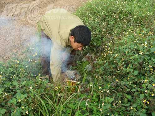 Đại “Bò” dẫn chúng tôi đi men dọc bờ sông về phía Tây, đến một bãi cỏ hoang. Anh đốt hương nghi ngút, vạch từng bụi cỏ và nói chuyện với người chết như thể linh hồn người chết đang ngồi đó.