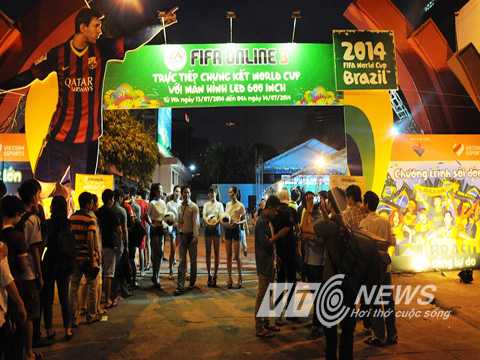 Tại Nhà Văn hóa Thanh niên đã cho treo tấm bảng rất lớn với dòng chữ "trực tiếp chung kết World Cup với màn hình Led 600 Inch".