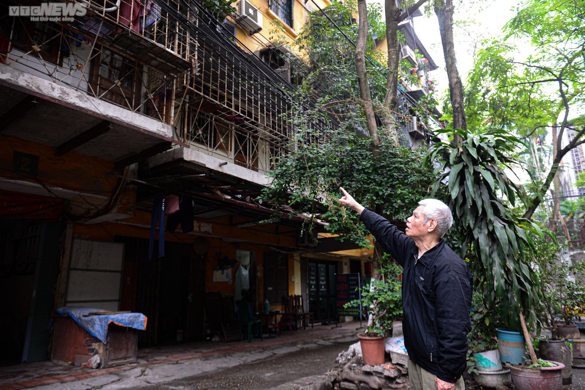 Tương tự, căn hộ nhà ông Lê Như Quý (71 tuổi) cũng xuống cấp, vữa rơi từng mảng. Gia đình ông phải làm máng để hứng nước từ trên xuống tránh dột. “Dù rất lo lắng, đặc biệt khó chịu vào những ngày nồm ẩm, nhưng không biết đi đâu nên chúng tôi vẫn phải cố gắng bám trụ ở đây. Chúng tôi mong thành phố sớm xây dựng lại các khu tập thể cũ để người dân không còn phải sống trong không gian chật chội, tù túng, bất an, không mưa cũng dột như này nữa", ông Quý nói.