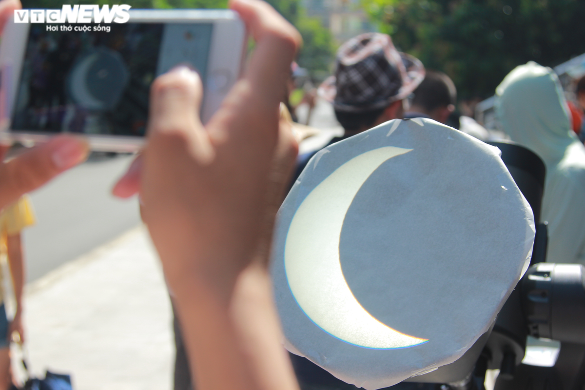 "Hôm nay, chúng tôi chuẩn bị 200 kính giảm điện từ, có tác dụng chặn 99,9% bức xạ có hại. Ngoài ra còn có 3 chiếc kính thiên văn. Do lượng người lớn nên chúng tôi tạo cái phễu để hứng hình ảnh của Mặt trời và Mặt trăng để quan sát nhật thực. Phải đến năm 2031, hiện tượng nhật thực mới lại xuất hiện", anh Phan Thanh Hiền - giảng viên Khoa học vũ trụ và ứng dụng, ĐH Khoa học và Công nghệ cho hay.