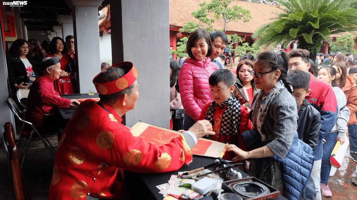Đối với nhiều người dân, ngày đầu tiên của năm mới dành riêng cho việc xin chữ, để cầu cho một năm an yên, suôn sẻ.