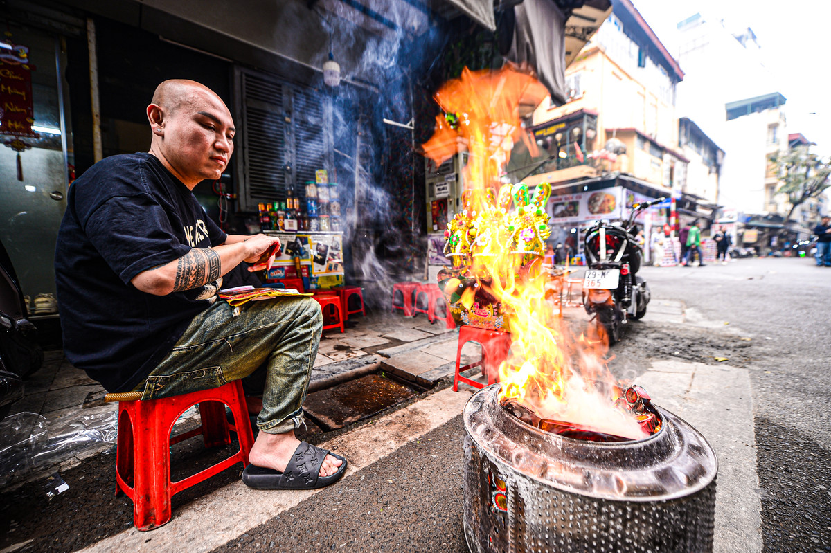 Dọc các con phố như Hàng Ngang, Hàng Đào, Hàng Buồm, Hàng Bông... dày đặc các lò đốt vàng mã, khói bay nghi ngút khắp khu phố.
