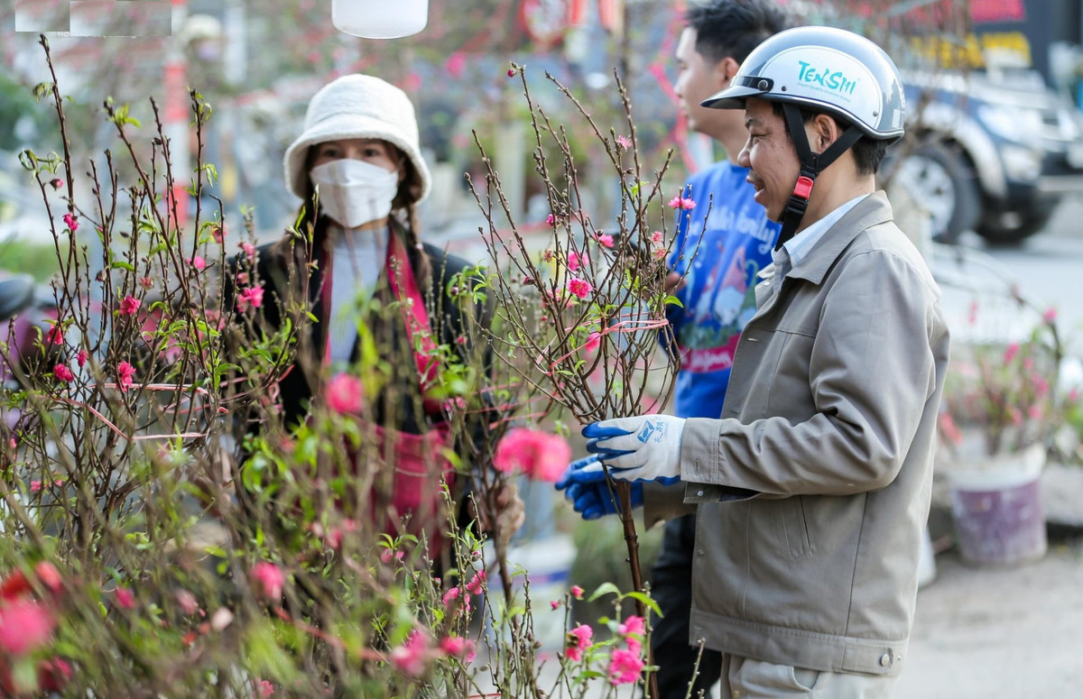 Nhiều người dân cũng như tiểu thương đến tận vườn đào Nhật Tân để chọn những cành đào ưng ý.