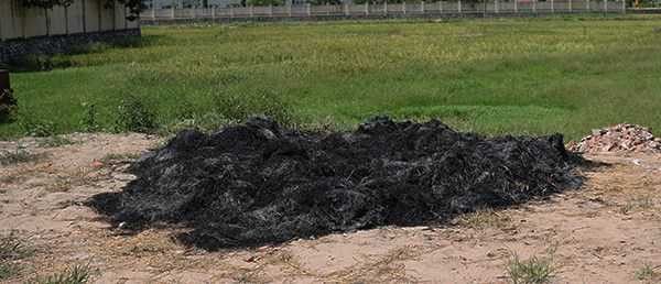 Đống rơm đã cháy thành tro sau một đêm. Người dân thường sử dụng tro để bón cho cây trồng hoặc bán với giá 10 nghìn đồng/kg.